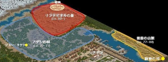 アデン内で最上位難易度の狩場設定(Lv75~84)になっている。