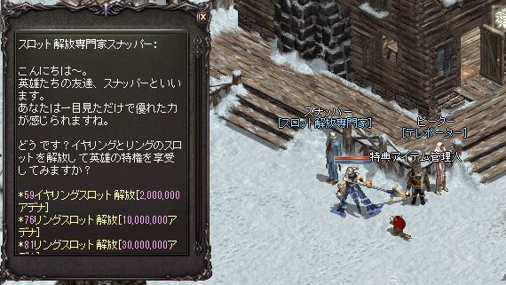 象牙の塔の村・宿屋前の[スロット解放専門家]スナッパーが解放してくれます。