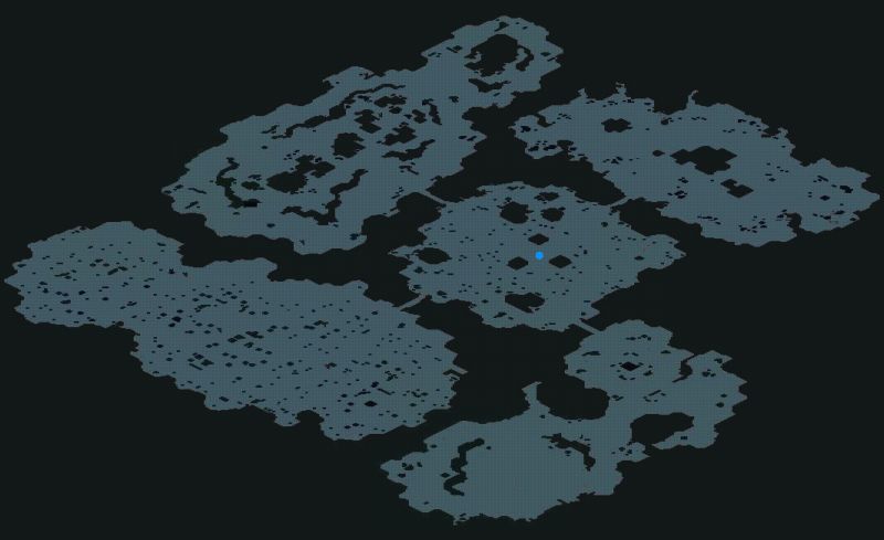 宙に浮かぶ魔法陣からイベントマップへ。青丸がスタート地点。