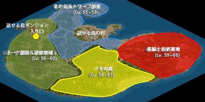 ◆北の島&ドワーフ部落エリア:Lv55~58向け狩場。