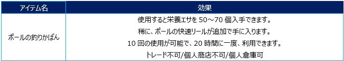 | アーリーサマーパス | 交換×/倉庫×/削除×/重さ:10 装備部位:アミュレット ダメージ低下+10 |