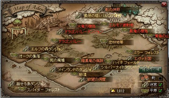 NPCテレポーターによる狩場一覧。