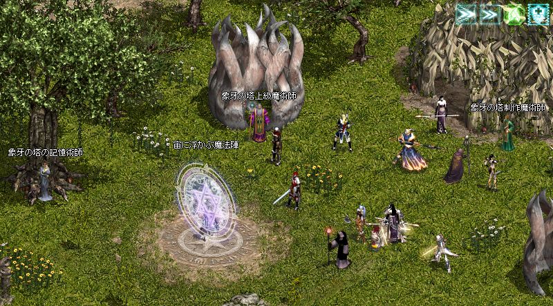 ギラン・宝石商前の象牙の塔のウィザードと会話しロビーへテレポート。
