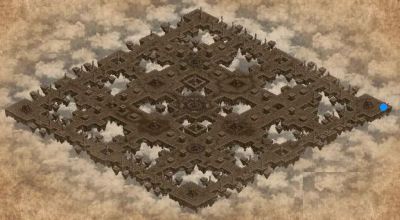 宙に浮かぶ魔法陣からイベントマップへ。青丸がスタート地点。